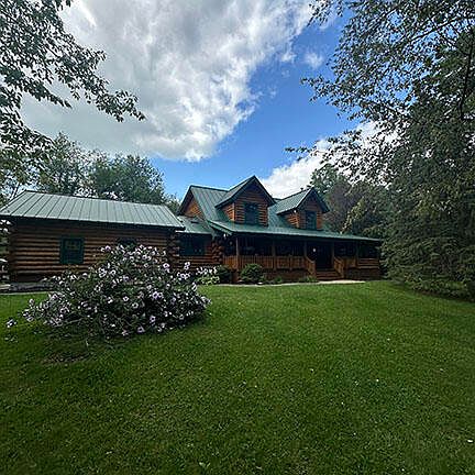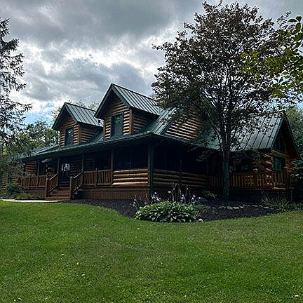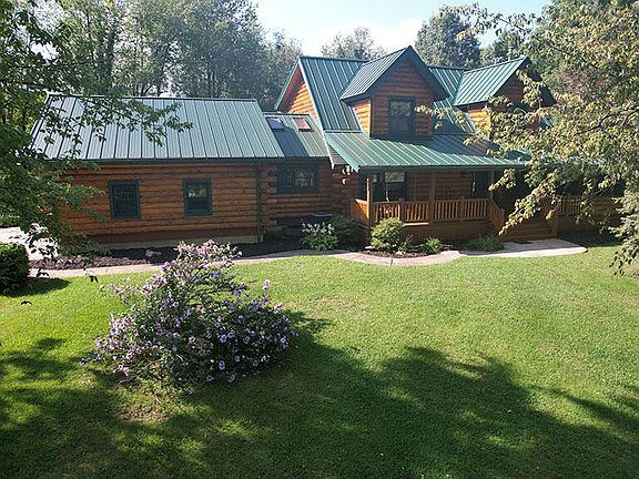 Experience this beautiful log home on 14 acres of pristine hunting land! Inside this custom home features a front living room with vaulted ceiling and cozy wood stove, a spacious kitchen and dining area with double pantries. There is a main floor bedroom and a large main bathroom. The large back entry includes the laundry with wall-to-wall cabinet storage and wrap around counter-space. The upper level features a master suite with walk-in closet and soaking tub. Also a third bath with walk-in shower and third bedroom. The spacious and unfinished lower level has a large utility room and is plumbed for another bath. Outside sit on your porch swing overlooking your picturesque front yard or enjoy your screen porch attached to your wrap around that leads to your back deck overlooking the 16 x 36 inground pool in your fenced backyard.