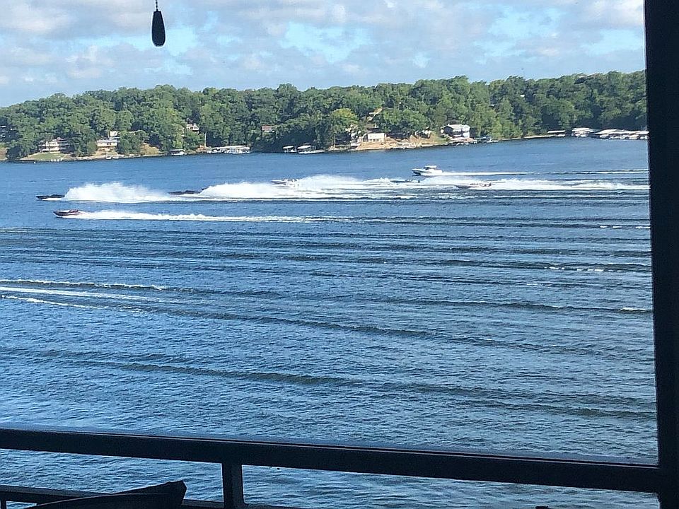 Peaceful 3 bedroom, 3 bathroom condo at The Falls in Lake Ozark, MO with breathtaking views of the main channel. Mature complex with trees, plants, and flowers throughout the grounds. This unit is only a few steps down from parking, there's an open-concept kitchen, laundry, dining area, wet bar, and living room. Amenities include two outdoor community pools, club house, a tennis court, and a playground. This is a great location at Mile Marker 2.5 from the Bagnell Dam off of Horseshoe Bend. The special assessment has already been paid and covers a brand-new lakeside deck. The unit includes a 21 X 28 Boat slip. HOA allows nightly rentals and this unit has an outstanding rental history.
