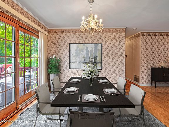 Bring your ideas! Expand the kitchen, take down the living/dining room wall, this ranch offers great bones. Hardwood flooring- foyer, dining room, family room, bedrooms, and hallway. Roof is approx. 9 years, Central air 3 years, 6 Andersen windows plus 2 newer remodeled bathrooms. 16X15 family room & 16X13 living room. Kitchen offers a GE range and dishwasher (2 years young) and pantry. Formal dining room with oversized sliders to deck, fenced yard and oversized driveway. Septic was replaced in 2001. RT Zone allows for professional office use. Home is being sold in as-condition. Near to Manalapan Rec center, Municipal Offices, Post Office and Police Station.