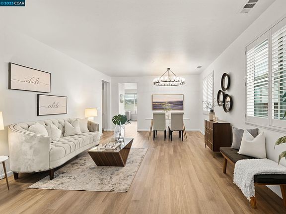 Step into upscale living with 138 Gold Valley Way in American Canyon! This updated 3B/2B home blends sophistication with comfort inside and out. Airy open concept living space is sun-drenched with new engineered hardwood floors. Includes formal living room, dining room with modern elegant fixture, and family room with nook for entertainment center. Chef’s kitchen has granite countertops, SS appliances, breakfast bar, ample cabinetry, dining nook opening to patio. Three spacious bedrooms offer great versatility for home office, play room, etc. Primary suite boasts walk-in closet, spa-quality en suite bath with dual vanity, walk-in shower, soaking tub. Backyard is a paradise with patio, garden beds, fruit trees. Laundry room. 2-car attached garage with ample storage. Located on a residential street near Shenandoah Park, restaurants shopping, excellent schools, nature preserves. Easy access to I-80.