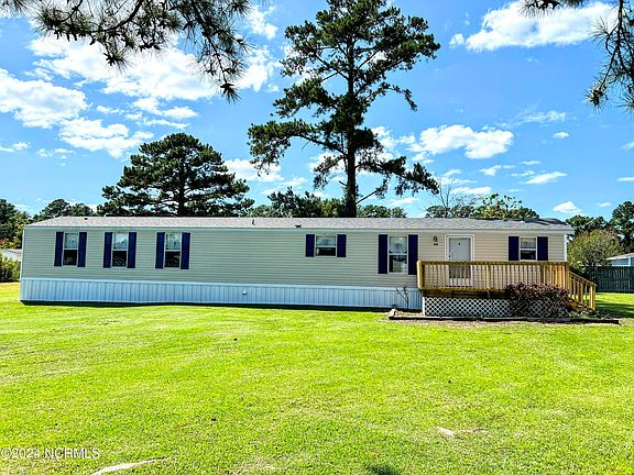 The inside has an OPEN floor plan and feels very modern, all flooring has been taken up and replaced with plywood then high end LVP throughout the home. Walls have had seams removed for a clean smooth sheetrock finish. The kitchen is all new; refrigerator, oven, dishwasher, microwave, soft touch drawers/ cabinets, sink, and beautiful butcher block tops ALL NEW. Fixtures, lights, toilets, smoke detectors updated and or replaced. Completely repainted, added new trim, molding, switch plates. Move in ready! No HOA or City Taxes! 10 Mins to Cherry Point or Morehead City.