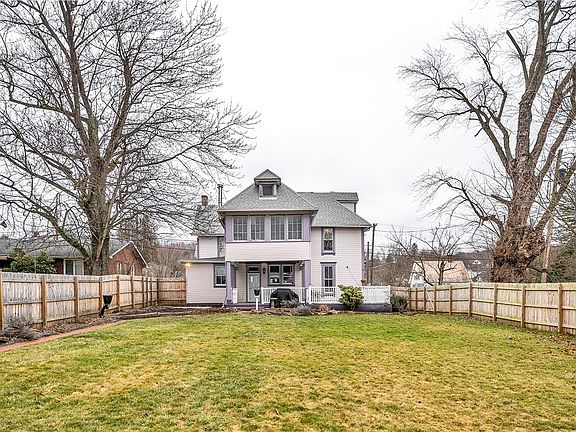 Amazing updated Victorian w/new roof,newer mechanicals-boiler,H20&electric.Level lot w/fencd backyrd&2 car detachd grg w/2nd flr.Curb appeal+freshly painted exterior&covered front porch w/ornate trim.Enter thru solid wd door-leaded sidelghts&transom,hardwd foyer.Hardwd&decorative FP in form liv rm/office.Thick cased wd entries lead to form din rm boasting original crwn,chair,window eyebrow trim&wains.Find unique plaster work,Marble topped radiators,new or restored lighting throughout.Spacious fam rm w/tile fp,amazing windows-opens to brkfst rm.Updatd kitch w/white cabinetry,thick granite tops,high-end Jenn-Aire stainless appliances-5 burner gas,2 sinks,brkfst bar&breakfast rm Huge Trex deck to mudrm adjacent to Updatd 1st flr full bth.New carpet w/orig bannister up.Masterw/Hrdw,Lrg cedar walkin w/blt ins&french doors to sunrm w/woodburner.New bth w/designr ceram,glass &ceram shower,BR2&3 w/new carpet,Br 4 hrdwd all w/decorative FP&new Fans share updated hall bth.Low lev workshop MUST C