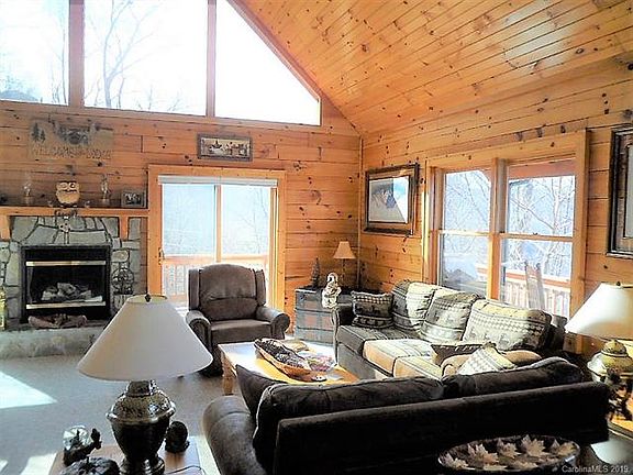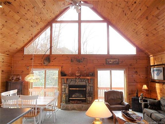 LOG CABIN WITH OUTSTANDING YEAR-ROUND VIEWS & PRIVACY. Distant mountain views; as well as valley night lights. High elevation (4,000 ft+) to enjoy the cool summer air. Open greatroom design with fireplace, soaring wood tongue & groove cathedral ceilings, & wood beams. Extra glass & windows bring in the light & natural setting. The upper floor loft looks down on the beautiful greatroom; making a very nice sitting or reading area. Extra decking & porches. This cabin offers extra space to create more finished rooms; extra 598 sf on the lower level with stud walls partitioned out for bonus room(s) & "stubbed-in" bathroom. This cabin has been loved & gently used as a vacation home by only two different owners. A great place to spend different seasons & vacations! Paved road access to cabin; large paved parking area. Located close to the heart of Maggie Valley; restaurants, shops, entertainment, parks, walking paths, etc. Also near Blue Ridge Prkwy, GSMNP, Cherokee, Harrah's, & Waynesville.