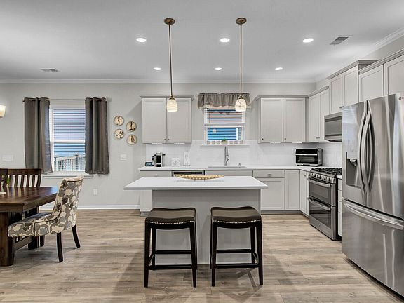 One of the best deals in Nexton!! The owners spared no expense when they custom-built this home in 2020. Over $100k in upgrades and the home has been IMMACULATELY maintained ever since! Discover your dream home nestled in a tranquil setting, boasting three spacious bedrooms, plus a versatile flex space ready to fulfill your needs--be it a fourth bedroom, a home office, or a playful retreat. This stunning residence invites comfort and exudes modern elegance throughout.Step inside to find a home adorned with high-end finishes that touch every corner, from the exquisite flooring to the meticulously crafted molding and trim. The heart of this home, the kitchen, features upgraded stainless steel appliances, sleek quartz countertops, a large island, and a stylish tile backsplash.The master suite is a haven of relaxation, complete with a walk-in closet and an en-suite bathroom showcasing a double vanity, ensuring a serene start and end to your day. Additional bedrooms offer ample space for family and guests, complemented by two full bathrooms, enhancing convenience and privacy. Outside, the screened back porch, extended further for your enjoyment, offers a peaceful escape overlooking a serene pond. With no neighbors behind, your fenced-in backyard is a private oasis, perfect for tranquil mornings or entertaining under the stars. Every detail in this home has been carefully selected and quality crafted, promising a lifestyle of luxury and ease. Welcome to your new sanctuary, where every day feels like a getaway. Upgrades include: crown molding, board and batten accents, quartz countertops, screened-in porch with $2800 in shades, concrete back patio, high-end LVP flooring, fireplace, high-end garage door, and SO. MUCH. MORE!! Bradford Pointe HOA provides free Wi-Fi, saving you $600+ annually!