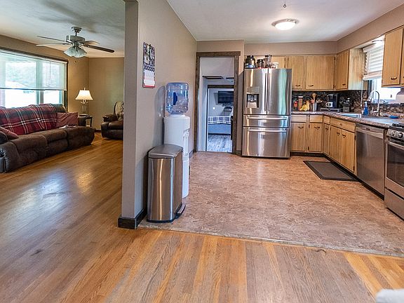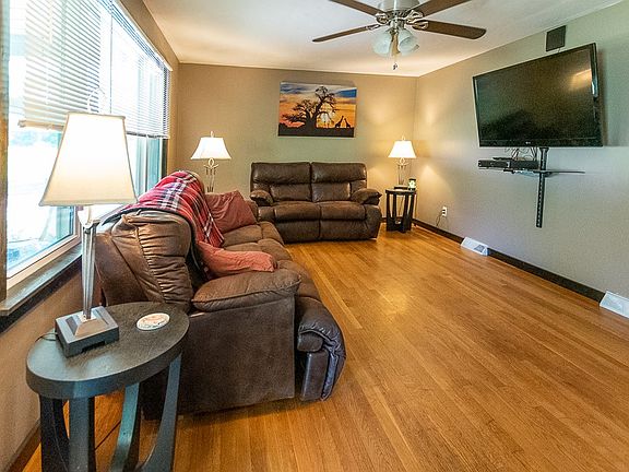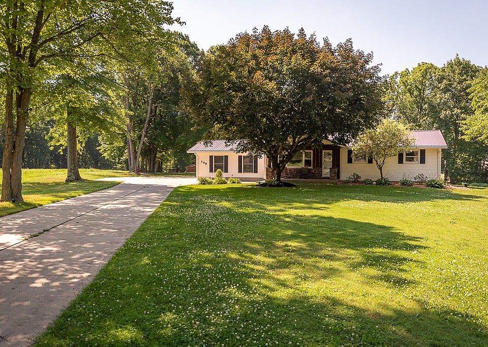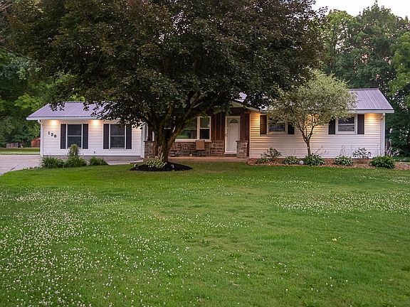 Vinyl-sided, ranch-style home has two steps down to a 15X23 family room with skylights and a .5 BATH. It's beautifully set back on 2.2 private acres with a ravine and creek at the rear. The home has a metal roof, triple pane windows, newer interior & exterior doors, a massive concrete driveway & front porch, a 23x25 heated & insulated 2 car attached garage with 8 & 9 ft doors, a walkout basement with a 21x11 room used as a 3rd BR, central air, hardwood floors, an updated tiled bath, a spacious kitchen/dinette with appliances and a 21X12 Owner's bedroom and LOW taxes. LED lighting illuminates the property inside and out! The landscaping stones and lights add to the beauty! The house is wired for a generator, it's well insulated and the sump pump has a battery backup. You can relax on the wonderful front porch, enjoy the country atmosphere and be in town within minutes! Easy access to I80 and I376!