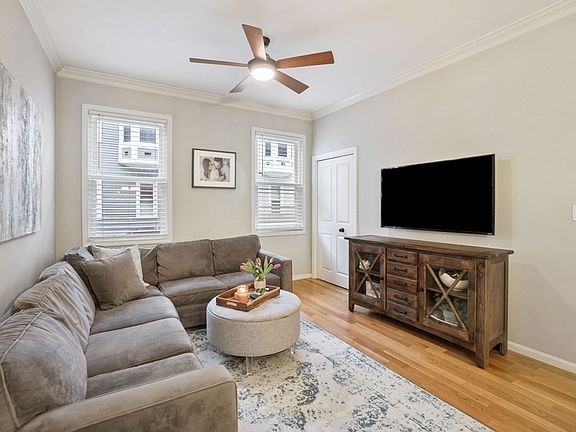 Welcome home! Beautiful 2-bedroom condo boasting open concept living, soaring 9 ft ceilings, stunning hardwood floors throughout, and the convenience of first floor living. The bright and modern kitchen, offers stainless steel appliances and quartz countertops. The spacious and functional open concept layout allows for a comfortable living room and full dining. Oversized primary bedroom offers large custom closet and additional built-in storage. Sunny second bedroom also includes a custom closet. Modern bathroom features newer fixtures, large tub, and subway tile surround. Private laundry and large private storage in the basement. Entire condo was renovated in 2018. Tucked away on a quiet side street this condo is walkable to all that Charlestown has to offer. Short walk to many playgrounds, dog parks, popular Charlestown restaurants, public transportation, Whole Foods and the Bunker Hill Monument.