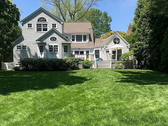 CUSTOM 5 BR, 3 BA NANTUCKET SHINGLE-STYLE ROWAYTON COLONIAL HAS EXTENSIVE ARCHITECTURAL DETAILS AND AWARD-WORTHY KITCHEN AND BAS. Entry Foyer w/ 2 story ceiling plus Juliette balcony. Sleek LR features fpl w/ mantel and wainscoting opening to DR w/ wainscoting and sliders to large deck. Striking EIK features grand center island, custom cabinetry w/ blue eye granite, SS appliances framed by vaulted ceiling and highlighted by custom windows/sleek lighting. 1st flr Master Suite w/ tray ceiling, his/her walk-in closets, and BA w/ jacuzzi. 2 addl BRs share new BA. Den w/built-ins. Upper FR w/ Library, plus 2 BRs share BA. Theater Room, Wine Cellar. LL finished: laundry w/ extensive storage. LIVE IN ONE OF THE HAPPIEST SEASIDE HOMES IN ONE OF THE HAPPIEST SEASIDE TOWNS!
