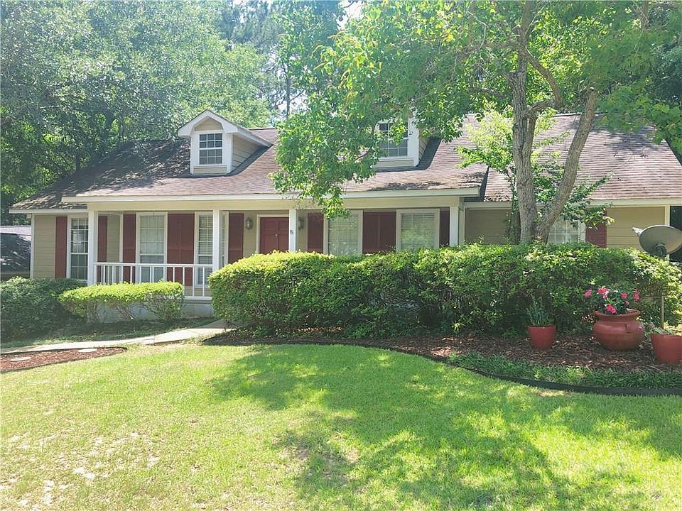 FOUR BEDROOMS, 3 BATHS WITH A 21X16 GREAT ROOM AND 19X17 REC ROOM MAKE THIS WELL MAINTAINED 2600 SQ FT HOME IN LAKE FOREST A GREAT BUY. HARDWOOD FLOORS AND HIGH CEILINGS IN THE LIVING AREAS AND A SPLIT BEDROOM FLOOR-PLAN WITH A GUEST BEDROOM/OFFICE AND FULL BATHROOM OFF THE REC ROOM AREA. THE 17X15 MASTER BEDROOM HAS A DOUBLE VANITY AND LARGE WALK IN CLOSET. THE KITCHEN WITH STAINLESS APPLIANCES HAS A BREAKFAST BAR OPENING TO THE BREAKFAST ROOM AND SERVING BAR OVERLOOKING THE GREAT ROOM WITH A VAULTED CEILING AND FIREPLACE. THE REC ROOM OPENS TO A COVERED STAINED WOOD DECK IN THE BACK YARD. THERE IS PRIVATE PARKING IN THE BACK SINGLE CARPORT. FRENCH DRAIN IN BACK YARD. NEW WINDOWS. THIS HOUSE IS WALKING DISTANCE TO THE GOLF COURSE. THERE IS A VERY REASONABLE MEMBERSHIP FEE OF $60/MONTH WHICH ALLOWS USE OF THREE SWIMMING POOLS FROM 7AM-8PM DAILY, ACCESS TO THE YACHT CLUB, GOLF COURSE, RACQUET COURT, DISC GOLF COURSE AND HORSEBACK RIDING.(additional fees apply in some cases). THIS LOCATION PROVIDES FAST ACCESS TO THE BAY WAY OR 1-10 E.