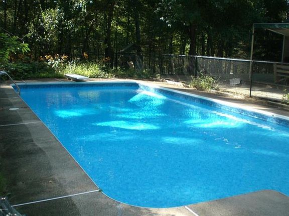 RIVER STONE and CEDAR SIDED CONTEMPORARY ON 1.05 ACRES WITH INGROUND SWIMMING POOL!Featuring 4 Br's (2 on 1st floor, 2 on 2nd floor), 2 full Baths, Large Mstr Bedroom open to office nursery. Custom Granite kitchen features island with 2nd sink, stainless steel appliances; commercial stove, refrigerator and dishwasher. Washer and dryer included as well! Kitchen open to large dining area w fireplace. Another exceptional feature is the 2 story formal dining room and living room with fireplace #2 and floor to ceiling windows plus doors that open out to decks and pool area! Inground heated 20 x 40 swimming pool, multi level decks w retractable awning, poolside outdoor shower and Bathroom make this unique home even more special! ULTRA PRIVATE SETTING, THIS HOME IS A TRUE GEM AND A MUST SEE!