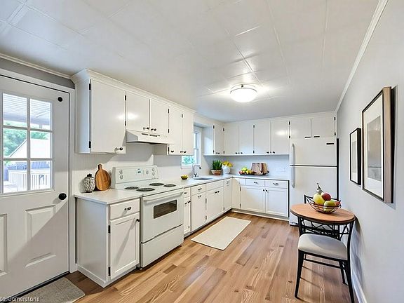 Welcome to 138 King Street in the charming town of Stratford. Are you looking for the perfect starter home or to down size? Look no further. This cute two bedroom, one bath home is the one for you. This bungalow has a bright eat in kitchen with plenty of cabinet space. The main floor features a large open living and dining room, bathroom and two bedrooms. Hardwood floors throughout the main living spaces. The basement offers laundry, utilities and loads of storage space. You can walk to all the action and shops that downtown Stratford has to offer. The Theatre, Lake Victoria and plenty of restaurants are all nearby. This house features a fully fenced yard with a large shed that has a work bench and is located on a quiet street. Book a showing and come see this adorable home today.