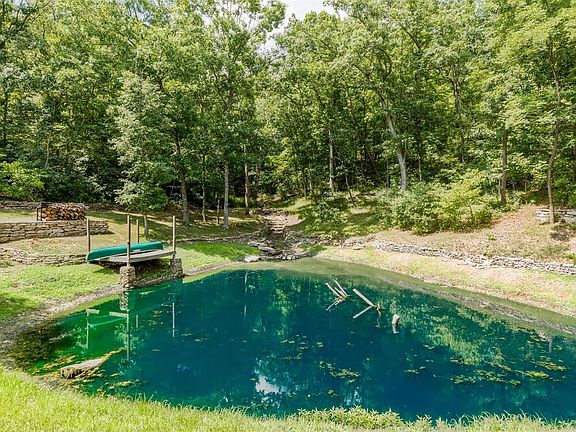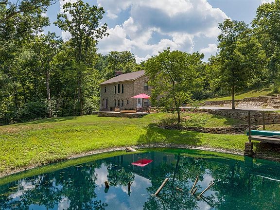 Truly one of a kind! Immaculate, custom-built stone home, 2543 sq ft on over 5 acres with private pond & waterfall. WOW! Extensive remodel in 2022, fabulous custom features, awe-inspiring craftmanship & unique architecture. So much living space on the main floor. The huge bonus room with wood-burning fireplace would be an ideal family room, den, office, or easily a 4th bedroom. Custom kitchen with quartz counters & center island and separate dining room. The massive master suite is beyond belief! Stone masonry fireplace, walk-in closet, & brand new en-suite with custom tiled shower. 2-story atrium windows provide the most amazing views of this serene property. Lavish patio is ideal for entertainment & relaxation, as it overlooks the private pond & sprawling yard. There's always an abundance of wildlife to enjoy. So much peace & tranquility here, it's easy to forget the town amenities are still very convenient. Meticulously maintained, wrapped by nature, & sealed with a home warranty!