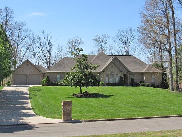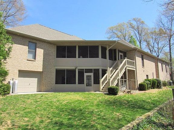 Reduced by $20,000! Meticulously crafted & elegant lakefront Calhoun Builders home has a seasonal lake view of Needle's Point and is located within walking distance of the Slate Branch boat ramp. This 5/6 BR/3.5 BA brick ranch w/4,425SF includes a full, finished walkout basement and a 665SF detached garage finished with H/A & half bath. Attention to detail throughout with intricate vaulted & treyed ceilings, beautiful hardwood flooring with accents, & masterful trimwork. Other features include formal dining, home office, breakfast nook, downstairs kitchen, utility garage downstairs, large screened-in porches upstairs & down, large master suite, and huge guest suite downstairs. This home is simply perfect!
