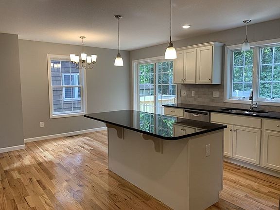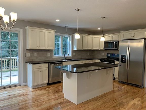 Nestled on a private, tree lined lot is this beautiful new construction Colonial ready for its first owners. Walk right in to the spacious living room that fills with natural light from the oversized picture window. Flow right into the eat-in kitchen with contrasting white cabinets and black granite counters, a large kitchen island that can seat 4, stainless steal appliances, and a dining area big enough for all your friends and family. Sliders from the kitchen lead right out to the backyard deck and partially fenced yard. The main floor also boasts a full bath with shower/tub, and a main floor Master bedroom! The second floor provides a second Master bedroom with enormous walk in closet, two large bedrooms with wall to wall carpet and ceiling fans and a great sized shared bath with double vanity, tub/shower, and large linen closet. The unfinished basement is perfect for additional living area, media room, home office, or home gym. The opportunities are endless!