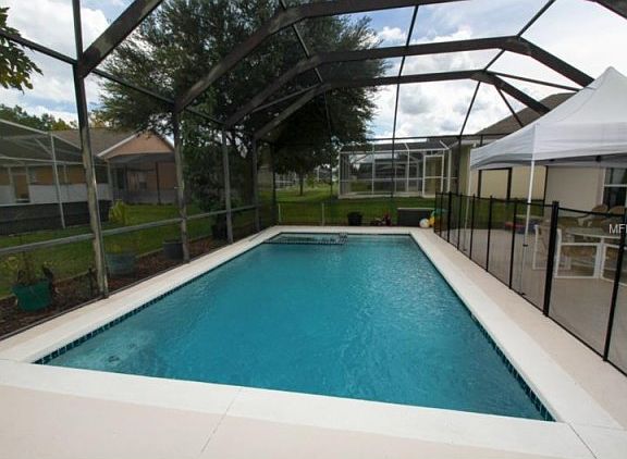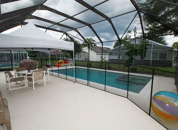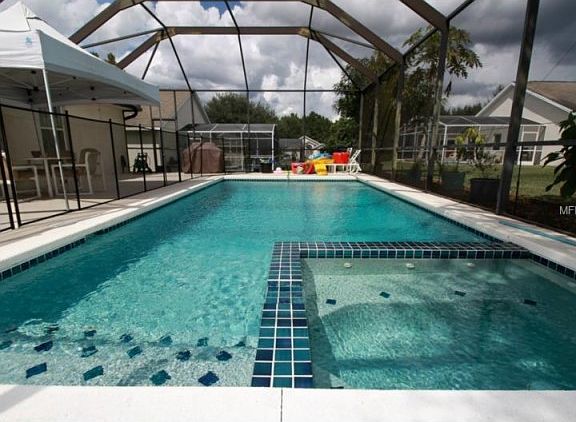 Short sale: Beautiful 3 bedroom/2 bath POOL home in Florida Pines beckons you through the front door into the foyer where you're met with a large living room/dining room combo to the left and spacious open concept kitchen with island and separate dinette with bonus outdoor screened in area, plus family room straight ahead. Perfect for entertaining! Head outside to enjoy the large lanai and lounge out by the screened-in pool or unwind in the heated pool spa. The master bedroom is complete with a walk-in closet. The master bath is equipped with an over-sized dual sink vanity, garden tub and separate shower. Move-in as your primary residence or zoned as a short term rental to use as a vacation home. Conveniently located to nearby shopping, Disney World and the attractions. Community pool, playground, lawn care, pest control and sprinkler maintenance are included in the HOA dues. Call today to schedule your private showing!