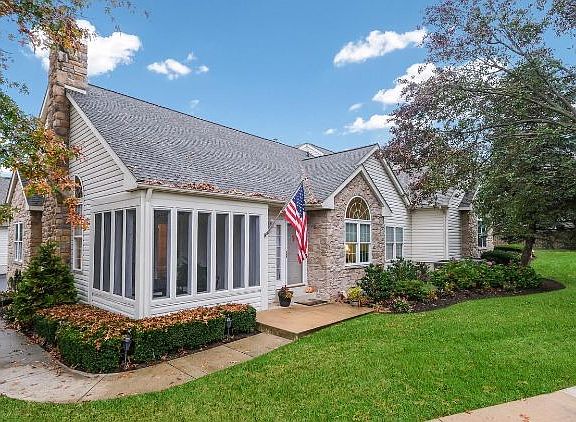 This impeccably maintained classic carriage home is situated in the desirable LionsGate Community. This tastefully updated Windsor Model features 3 bedrooms, 2 bathrooms and a sitting room. This home is certainly welcoming. The layout is perfect for everyday living, and entertaining. As you enter this home you will appreciate the foyer with hardwood flooring and large coat closet. Just beyond the foyer you will find the stunning living room with gas fireplace and vaulted ceiling. The marble fireplace features a custom cherry wood mantle. Adjoining the living room you will find the formal dining room with extended buffet table nook. Just beyond the dining area you will find the eat-in kitchen, featuring ample Corian counterspace and gorgeous cherry cabinetry. The kitchen also features vaulted ceilings and a display area above the cabinetry. The Owner's suite is graced with vaulted ceilings, a huge double vanity, large shower and walk-in closet. There is an additional bedroom and hallway bathroom on the first floor, and there is a sitting room with a large window that provides a great view and plenty of natural light. You will also enjoy your days and evenings relaxing on the corner screened porch. The 2nd floor provides a spacious bedroom with large dormer window, and huge closet that could be converted into a bathroom. The full basement provides plenty of storage space, and the 2 car garage is spacious. So much has been done for you recently, including the roof in 2017 and HVAC system in 2014. The home was painted and carpeted in 2012, and looks like it was done yesterday. Situated in Franconia Township, Montgomery County, LionsGate is a fantastic 55+ community with 156 homes. Although currently on hold, LionsGate typically has many organized social events. There is a clubhouse with meeting and party facilities, workout facilities, library, swimming pool, tennis courts, walking paths and more.