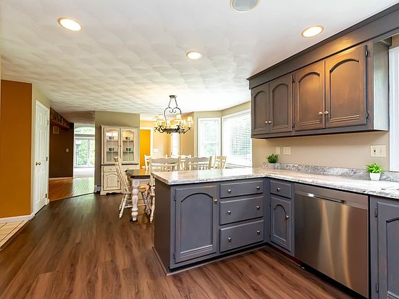 Priced Reduced! Picturesque private setting of this lovely 4 bedroom 2 1/2 bath Garrison-style home awaits on 1.88 acres and ready for you! This home is not to be missed with the space throughout and everything it has to offer. A welcoming foyer leads to the eat-in kitchen with new s/s appliances and LVP flooring. The formal dining room will be perfect for holiday gatherings and leads to the grand family room with wood beams, cathedral ceilings & wood fireplace. The 1st level is complete with an additional room for an office or den and 1/2 bath w/ laundry. 2nd level features the primary bedroom with 3/4 bath and walk-in closet. The 2 additional bedrooms have plenty of space and is complete w/ a full bath. The additional finished 3rd level offers a 4th bedroom plus bonus room. Basement features the 2-car garage lots of storage. You will just be amazed at everything the private backyard has to offer for all of your fun. Cool off in the beautiful 18' x 36' in-ground heated pool with gazebo area to enjoy the summer pool parties. Step out on the deck to a new 6-person hot tub w/lights & Bluetooth, perfect for relaxing and stargazing on those crispy fall nights. Work from home? You will love the large outbuilding office complete w/ ethernet, heat & a/c overlooks the beautiful woods. An additional shed completes the yard for all of the tools & toys. Quick close possible! Schedule your showing today!
