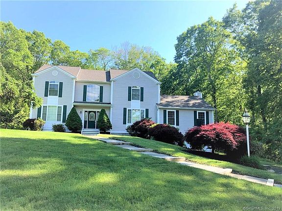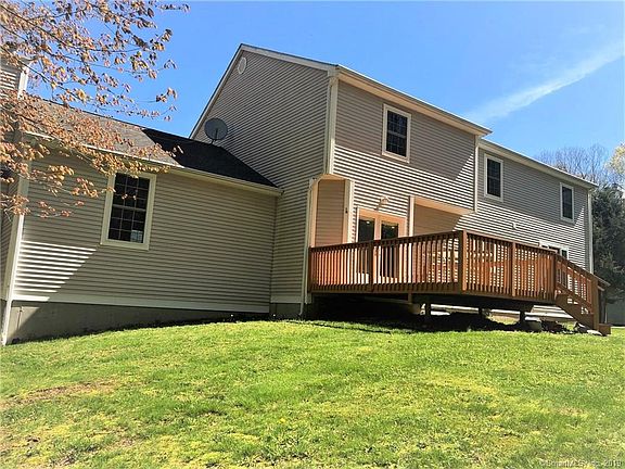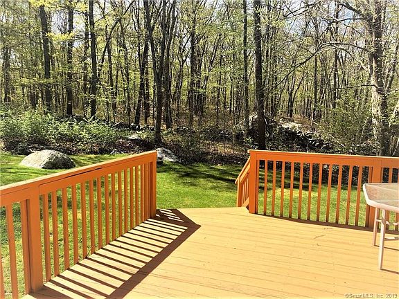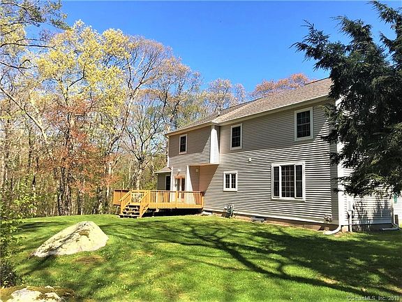 A welcoming home offered at The Villages of Long Wharf, a short distance to downtown Mystic. Surrounded by mature trees set in a cul-de-sac neighborhood on a half acre lot bordering open space. Note the vaulted ceiling foyer, a grand entry. Straight ahead leads into the open and spacious sunny kitchen with a remarkable granite Island, a breakfast bar, plenty of counters to prepare and serve a meal plus a separate casual dining area. Doors open to the private back deck and facing a wooded tree lined yard. Notice the 9 feet ceilings throughout the first floor. The large great room is over sized with a vaulted ceiling and a center fireplace. There is a formal Living and Dinning room to finish the main level with shiny wood floors. Heading up to the second floor there are three bedrooms and a full bath. The fourth bedroom is the Master Suite with wood floors and plenty of room for a king bed. Attached is the master spa bath, choose to use the whirlpool tub or tiled shower. To add more living space head to the 1000 sq ft lower level that offers two finished rooms for multi purpose use and a laundry room. The garage enters into the lower level. A very warm and inviting home with sunshine, spacious rooms and private back yard in a well maintained neighborhood.