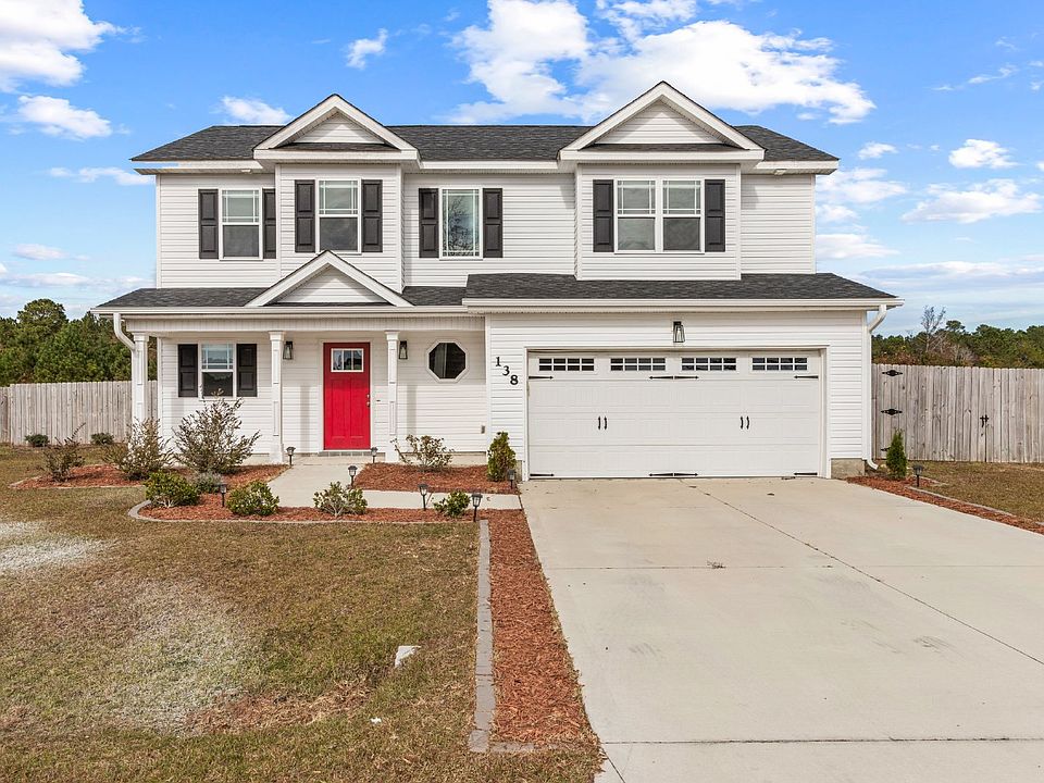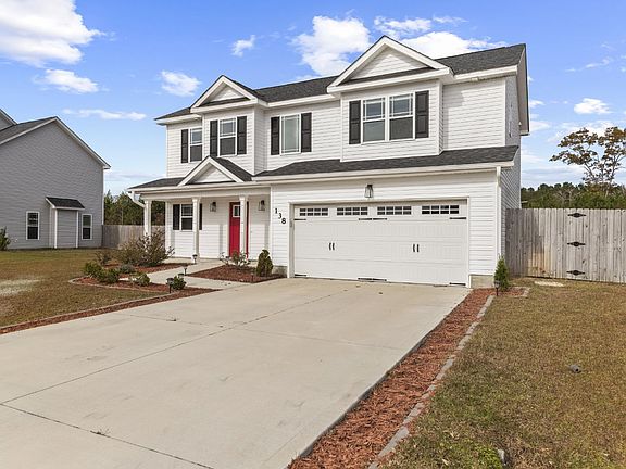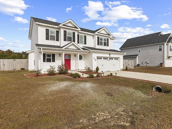 This spacious 3-bedroom, 2.5-bathroom home is perfectly situated just minutes from the Camp Lejeune main gate, offering the ideal blend of convenience and comfort. As you enter, you'll be greeted by a charming front covered porch, setting the tone for the welcoming ambiance throughout. Step inside to discover a bright foyer that opens into a warm and inviting family roomthe perfect space for relaxing or entertaining. The spacious living room is highlighted by a cozy fireplace, ideal for those cool evenings. The kitchen boasts ample cabinet and counter space. The master suite is a true retreat, featuring a large walk-in closet and an ensuite master bathroom complete with a dual vanity and a convenient walk-in shower. Two additional well-sized bedrooms provide flexibility for family, guests, or a home office. Outside, the expansive fenced-in backyard is ready for outdoor enjoyment, whether it's a barbecue with friends or a quiet afternoon soaking up the sun. The property is ideally located just a short drive from local shopping, restaurants, and beaches, offering the best of coastal living. For families, the neighborhood is home to Hunters Creek Elementary and Hunters Creek Middle School, making school commutes a breeze. Don't miss out on this incredible opportunityschedule your showing today to experience the best of The Farm @ Hunters Creek! No cats allowed.