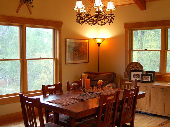 This Sophisticated bi-level home has been finished with the finest of details throughout. The elegant entryway leads you into this dramatic home. Red Lodge Creek runs thru the five acres of aspen trees, 2 car garage, shop, and over 3200 sq ft of 3 bed/2 ba, den, rec room, formal dining, the list goes on. Walk to or ride your four wheelers or snowmobiles a few miles to access thousands of acres of US Forest Lands!
