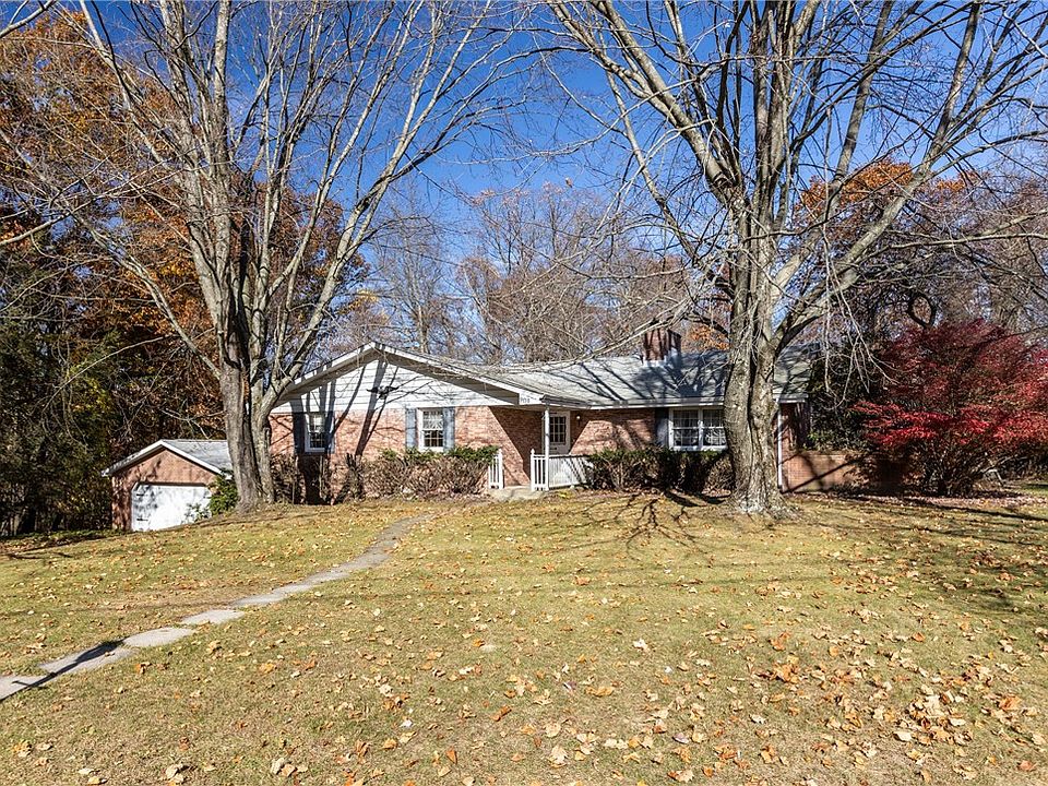 Nestled at the end of a quiet cul-de-sac, this solid all-brick ranch offers exquisite privacy and a beautiful lot. Natural light fills the home, which boasts beautiful hardwood floors, two fireplaces, and a generously sized, finished walk-out lower level. The main floor features three bedrooms, 1.5 baths, and a large living space, while the lower level includes an additional bedroom and full bath, perfect for guests or extended family. A sizable back deck invites you to relax or entertain in the serene, wooded surroundings. Included in the sale is a .5 acre lot that is adjacent to the home, which brings the total acreage to 1.46. Located in the Mars School District, this home is conveniently close to Route 8, Mars/Cranberry, and I-76. This home is waiting for your imagination and renovations and is being sold As-Is. Come and make it your own!
