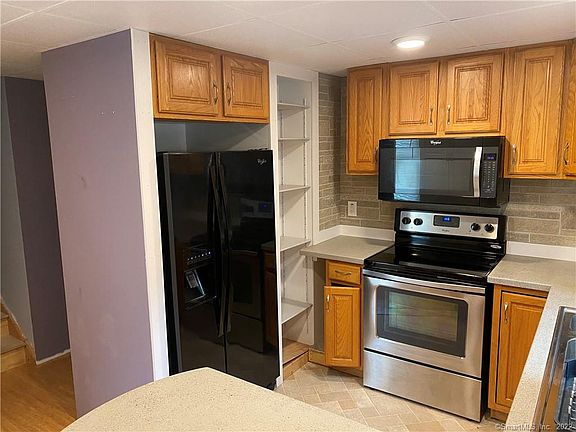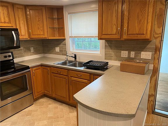 Beautiful move-in condition 960sf home located on RT6 downtown Terryville. There is a bedroom, large walk-in closet and full bath with two sinks on the upper level. The main floor has the kitchen with like-new oven/range, microwave, fridge with ice maker and garbage disposal, half bath and spacious living room. Includes one bay of the two car garage. Very large yard and a 372sf deck for entertaining. Efficient mini split heat pumps for air conditioning and heating. No pets and no smoking, which is why this home is in pristine condition. Tenant to supply their own washer and dryer. Hook-ups are in place in the basement.