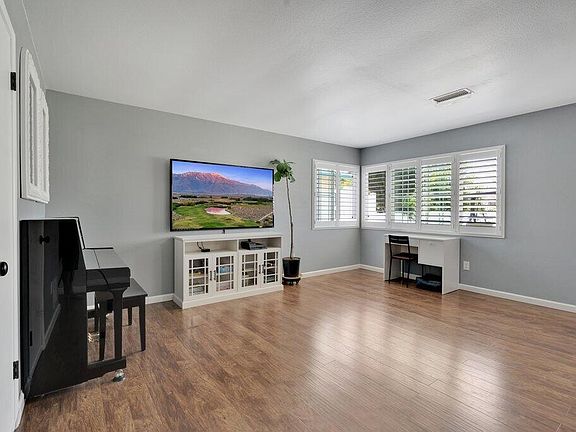 Entertainers Dream! Open floor plan on this 3-bedroom, 1 bathroom home. Lots of upgrades; laminate flooring, shutters, HVAC system, smart irrigation, smart garage door, and a fully upgraded bathroom. Step outside to see all your options in entertainment. Cemented upper level that contains a 12x12 gazebo and is ideal for shuffleboard or a basketball court. Step down to your lower level, enjoy a 14x14 gazebo and watch your children play in the grassy area, with an amazing fig tree that blooms in the summer. There is room for a pool or if you have a green thumb a wonderful garden. The backyard also offers a 7x11 that can be used as an office or for storage, along with a dog run. Picture yourself home! Schedule your appointment today to see what all this home has to offer!