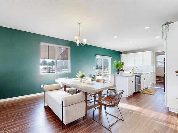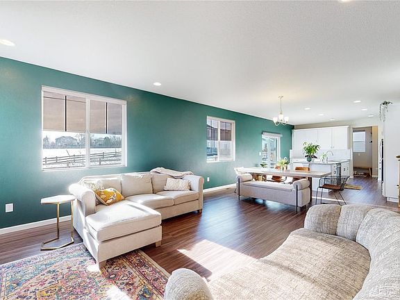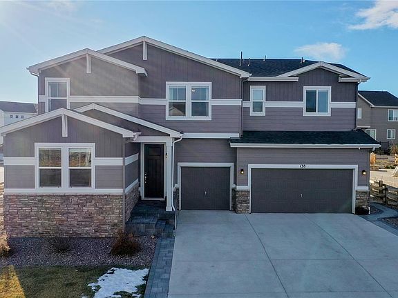 Possible VA assumable loan available!!!! Striking and better than new! This Crestone model home is all you could ask for! Nestled perfectly on a corner lot in the neighborhood with amazing professional landscaping already completed. Paver stone sidewalks, a concrete patio, a plumbed-in firepit, and durable turf make the backyard a perfect hangout for any time of year. Inside you will find a generous layout. The main floor boasts a guest room, a full bathroom, an informal office/den space, and a wonderful open kitchen and family room space that is the perfect mix for both entertaining and just relaxing. The kitchen features an expansive kitchen island, ample cabinetry, a walk-in pantry, and stainless appliances. The subway tile backsplash pulls the look together for a modern spin. Cozy up to the gas fireplace in the family room on those cold Colorado nights. Upstairs has 3 additional bedrooms, a large loft, a laundry room, and a Primary Suite with all the bells and whistles. The basement is entirely unfinished and awaiting your projects and ideas. Hurry up, this home could be yours!