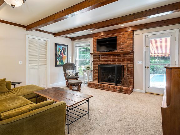 Beautiful 5 bedroom 2.5 bathroom home set against the serene backdrop of the desirable Cherokee Woods neighborhood. Mature trees abound on over 3/4 acre lot with close proximity to the lake. Enjoy entertaining in the solar panel-heated inground pool. Granite counters, eat-in kitchen, primary bedroom on main, exposed beams in great room with gas log fireplace, formal dining, three bedrooms upstairs with a jack and jill bathroom. The two addt'l rooms down are currently an office & workout room with custom built-ins (could be converted into a 6th bedroom/hobby room). All kitchen appliances & washer/dryer stay! No shortage of storage space throughout! Bonus 16x44 ft workshop/shed has electricity. No HOA! Must see in person to appreciate all this home's amazing atributes.
