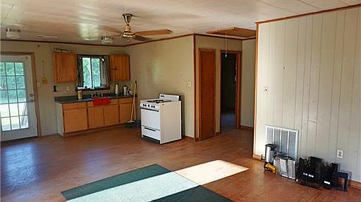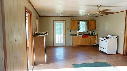 2/1 camp on stilts with a metal barn with concrete floor, unfinished upstairs area with many potential uses. Close to river and boat ramp. Main St Merrill is also known as Merrill-Salem Rd.