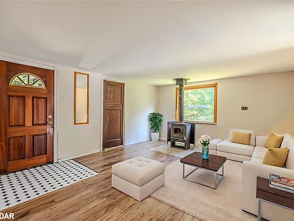 PRIVATE, PEACEFUL LIVING NESTLED IN NATURE & JUST MINUTES FROM GEORGIAN BAY! Welcome to your peaceful retreat in Tiny’s beautiful bayside community, just a short stroll from Tiny Beach Cove and Lafontaine Beach Park, where sandy shores and family-friendly playgrounds await along stunning Georgian Bay. Perfectly situated only five minutes from Tiny Cove Marina and less than twenty minutes to Penetanguishene or Midland for shopping, dining, and daily essentials, this home combines natural beauty with everyday convenience. Outdoor enthusiasts will appreciate the close proximity to golf courses, scenic hiking trails, and the breathtaking Awenda Provincial Park, while the home’s tranquil setting - surrounded by towering trees and lush forest views - creates an exceptional sense of privacy and relaxation. Inside, the inviting living room centres around a cozy wood stove that sets a warm and welcoming tone, while the bright kitchen and dining area offer a convenient pass-through and a sliding glass walkout to a spacious back deck overlooking the yard, ideal for entertaining or enjoying quiet moments surrounded by nature. Complete with three comfortable bedrooms, a 3-piece bathroom, a detached single garage, and ample driveway parking, this versatile property offers endless possibilities for year-round living or a delightful cottage getaway by the bay. Embrace the charm of Georgian Bay living and create lasting memories in this #HomeToStay, where nature, comfort, and relaxation come together in beautiful harmony.