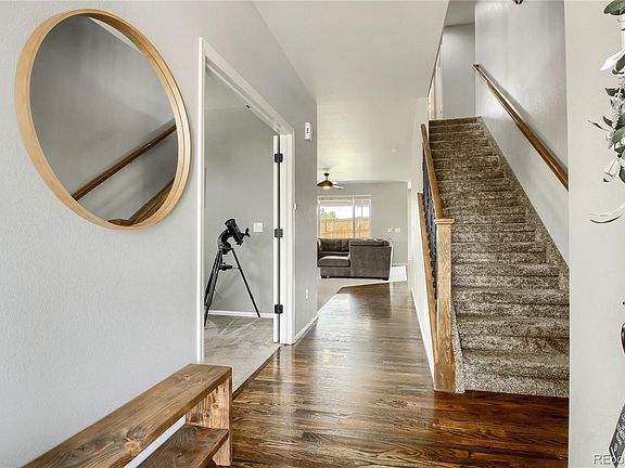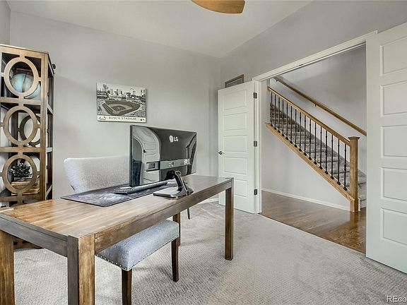 Don't miss out on this beautiful 4 bedroom 3 bath smart home with a 3 car garage. Nearly 2500 square feet above grade with a private office, butler pantry/coffee bar, great room, upstairs laundry, and a 5 piece master suite with a huge walk-in closet. The newly revamped chef style kitchen has quartz countertops, gourmet appliance package with large refrigerator, stainless steel farm sink, double oven, electric cooktop, convection microwave, and a new dishwasher. The custom butler pantry features a wine fridge, gorgeous floating shelves, and large drawers for extra storage. The 3 car garage includes epoxied floors, insulated garage doors, smart garage door opener, and is ready to charge your electric vehicle. A covered back patio with a hardlined gas grill and TV bracket left behind will have the backyard ready for you to watch the big game. The home will include the currently installed smart home technology including the Touch Pad Door Lock, Honeywell Smart Thermostat, Rachio Smart Irrigation, and Sky Video Doorbell. Owner upgraded fans and lighting throughout, an attic fan, whole home humidifier, and extra attic insulation has you covered. A full unfinished basement awaits your design finishes but currently serves as a workout area. Professionally landscaped front and back yards with irrigated systems, raised planters, storage shed, and large concrete patio. Safety features include a Radon mitigation System and hard-wired Smoke/Carbon Monoxide detectors. This home is located near a fantastic clubhouse with a large pool and event center. Home location provides easy access to I-470, 70, and the Denver International Airport, with easy commute to work or schools.