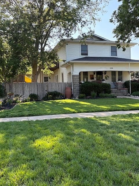 Gorgeous modern two~story home situated on a desirable corner along Main Street. This stunning property welcomes you with its inviting front porch, sleek contemporary design, and a well~established yard that enhances its curb appeal. Inside, you will find a beautiful square pattern hardwood floor, seven bedrooms and four bathrooms, a nice large kitchen, a fresh new coat of paint throughout, and an abundance of storage space. The spacious master un suite is a true retreat, featuring its own private balcony patio ~ perfect for morning coffee or evening relaxation. The spacious kitchen showcases warm wooden cabinets that will include a new stainless steel built~in microwave and a new stainless steel LG stove, oven. The main level provides two comfortable bedrooms and one full bathroom, along with a convenient laundry area designed for a stackable washer and dryer. Upstairs, the second level offers three additional bedrooms and two bathrooms, which includes that sweet master bedroom and bathroom with a jet tub and separate shower area. The fully finished basement expands the living space with two more bedrooms, a full bathroom, a cozy living room, and a charming bar area ~ perfect for entertaining!! Stepping outside the back door, you'll find an impressive outdoor retreat featuring a 12 x 20 metal gazebo that will include a cedar bar and plenty of space to entertain, a lush backyard pond and a multi~level cedar deck. You will definitely enjoy patio time at this location every day!! The fenced~in yard also includes a large cedar playset and a wooden shed. Completing the property is a detached double~car garage with a workshop and additional storage, making this home the prefect blend of comfort, function and outdoor enjoyment. This home truly has it all, inside and out. Please call Sandy Batt @ 785~483~8243 for a tour!!!!