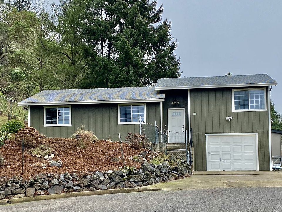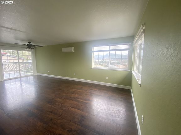 This charming Roseburg home presents beautiful views of the city from the fenced yard, welcoming covered entry, and spacious living room. This open layout presents a bright casual dining area leading to the rear deck, well equipped kitchen complete with appliances and plenty of counter and cabinet space, master bedroom with private bath and shower, and secondary bedrooms that share hall bath are on opposite sides of the hall way with laundry that includes washer and dryer. End of cul-de-sac