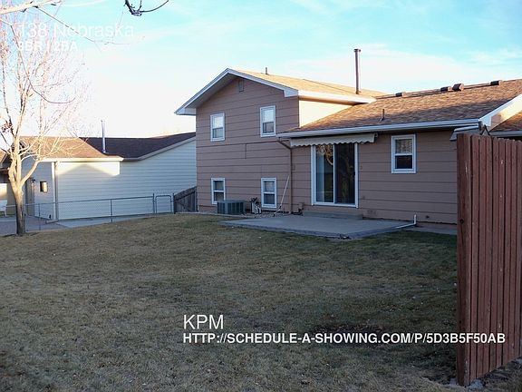 SCHEDULE A SHOWING ONLINE AT: showmojo.com/lh/5d3b5f50ab This 1,500 sq ft.home is located on the South side of Rapid City at 138 Nebraska. Some features of this home include 3 bedrooms, 2 baths, gas heat, and a single car attached garage. This home is available with a 6 month lease. Tenant would be responsible for all utilities, lawn care, and snow removal. This home is pet and smoke free. To ensure accuracy of listing, please visit http www.rapid-city-rentals.com/vacancies.