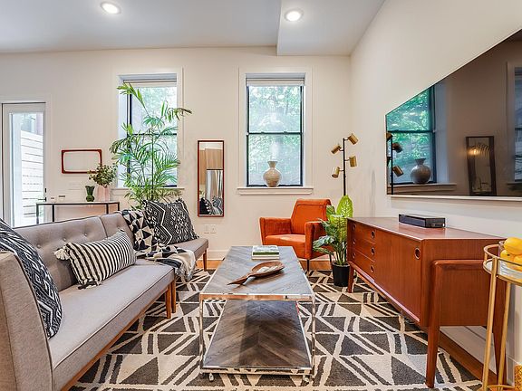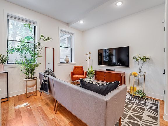 Nestled on one of the most coveted streets in Jersey City Heights, this stunning brick brownstone feels like a single family home, offering private sanctuary and spacious living. Built in 1885 and meticulously gut-renovated in 2020, the over 1800 sq ft, 2-story layout boasts 2 full bedrooms with additional rooms like bonus family room, full laundry, utility and storage rooms, plus 2 full and 2 half baths. With an additional 725 sq ft of outdoor living space, the expansive backyard is complete with a multi-section patio, mature trees for elegant shade, and manicured landscaping. The classic design of the home includes exposed brick accents and white oak flooring, while modern upgrades include Nest thermostat and custom automatic blinds. The contemporary eat-in kitchen hosts formal dining and elegant style with direct access to the backyard. Featuring waterfall quartz counters, sleek custom cabinetry, stainless LG appliances, a wine fridge, and thoughtfully curated pendant lighting, it is the perfect place to entertain guests. The oversized floor-through bonus room is finished with wood tile for added convenience, and offers endless possibilities for flex space - currently set up as a family room and office. Not one, but two primary ensuites host large walk-in closets with built-ins, providing ample storage space. The stylishly finished bathrooms feature upgrades like floor-to-ceiling tile, penny tile flooring, brass fixtures, multi-systems glass shower or soaker tubs. Located in the heart of Jersey City Heights, this unique property offers ideal access to walking distance to neighborhood favorites like Lo-Fi Bar, Choc’ o Pain French Bakery and Café, The Franklin Brunch and Dinner Restaurant, and Froth on Franklin Coffee House, plus other landmarks like 100 Steps Hoboken access, and unparalleled NYC views along the Palisade Cliffs. Owners are just blocks to the 2nd Street Light rail and Hoboken access, Riverview Fisk and Pershing Field Parks, Central Avenue main thoroughfare, and Port Authority bus stop. Nearby rental parking is potentially available.