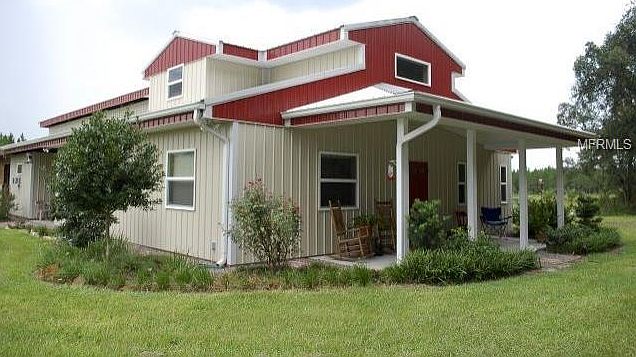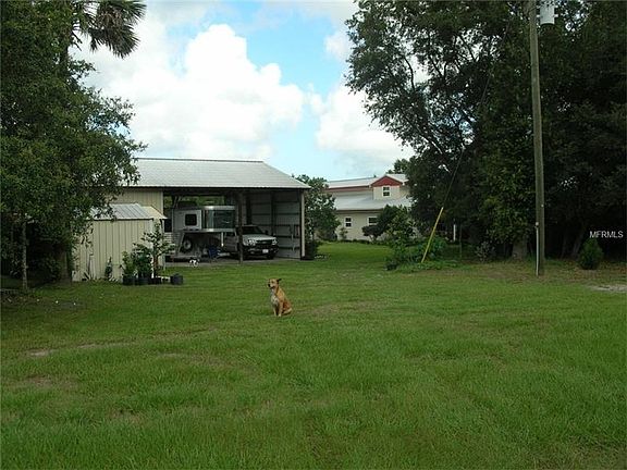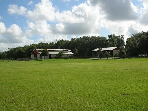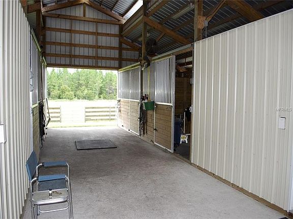 This is a beautiful home with attached 4 stall barn. The entire property is fully fenced, and crossed fenced and it borders Lake George Wildlife Management area with thousands of acres to trail ride on. The barn includes top of the line features and there is also an air conditioned office and feed and tack room. The four bay open garage is 31 feet deep, 50 feet wide and 11 1/2 feet high, offering three 12 foot bays and a 14 foot bay for horse trailer. An office/storage room is also included in the garage. Step inside to the custom built, three bedroom, three bath 2-story home which is loaded with upgrades. The front porch overlooks a beautiful oak hammock and cookout area which is ideal for entertaining. The spacious 2016 square foot home features an open living, dining and kitchen area. The gourmet kitchen offers top quality cabinets, granite countertops, and stainless steel appliances. The master suite is downstairs and includes a private bath and walk in closet. The downstairs guest suite is separate from the master, providing desirable privacy. The laundry room includes washer and dryer and lots of cabinets for storage. With a sitting room, spacious bedroom, lots of closet space and full bath, the upstairs is perfect for a private guest suite. Ceramic tile and Berber carpet are featured throughout. An arena, pump house, and equipment shed. This portion of the property includes 100 palm trees planted in ground with full irrigation system, adding to the valuable investment opportunity