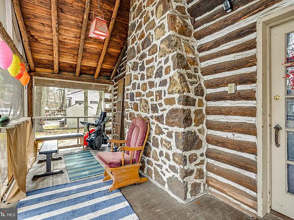 Cabin, Sweet Cabin! Real Estate is all about location and Medford Lakes is all about a lifestyle where every day feels like a holiday! As you approach, take note of the large driveway that fits 2 to 3 cars in front as well as the space on the left for 2 or 3 more cars. This charming log cabin boasts natural gas heat and central air (central air is RARELY found in these cabins). Step into the inviting front porch which promises hours of relaxation watching the world go by! Enter into the lodge room and note the windows here and throughout have been replaced with thermopane. Built in 1930, this home oozes with charm - there is a floor to ceiling stone fireplace, log walls and the floors are beautiful hardwood. Meander down the hallway toward the rear - on your left is a full bath with tub and surround. Ahead is the kitchen which was previously updated with lovely cream cabinets and granite countertops. The appliances have all been recently replaced with Stainless including gas range, microwave, dishwasher and refrigerator - all top of the line. Adjacent to the meal prep area is space currently used as an office but also perfect as a breakfast room. A door leads to the laundry area and pantry where there are new "Speed Queen" washer and dryer (all appliances are included). Now step into the back yard which is fully fenced and boasts an Everlast Shed, Screened Gazebo, above ground pool and koi pond! What incredible outdoor living and entertaining space! And an added bonus: Seller will include all flat screen televisions! The location is prime as it is steps away to Nokomis School and a short walk to 3 Beach and 4 Beach. Medford Lakes....where the living is easy! This is a True Medford Lakes Charmer! Hurry on this one!