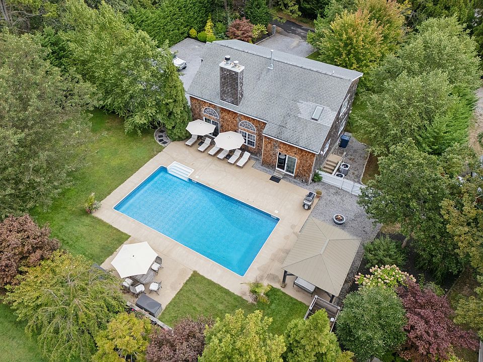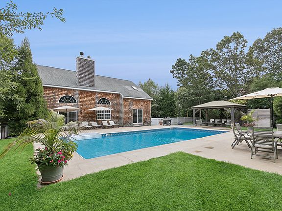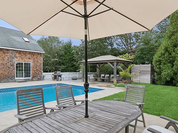 Rental Registration #: RP251629 Discover the charm of this contemporary four-bedroom home nestled on nearly one acre of private land. A haven of relaxation awaits, with a heated inground pool and a gazebo adorned with lounge chairs in the expansive backyard. Inside, you'll be greeted by a warm living room featuring cathedral ceilings, hardwood flooring, and a wood-burning fireplace that creates a cozy atmosphere. The main floor includes a comfortable bedroom for convenience and an additional office space for productivity. The spacious kitchen boasts granite countertops, gas cooking, and a large island that seats four, perfect for casual breakfasts. A separate dining area accommodates eight, making it ideal for entertaining guests. On the second floor, a luxurious master suite awaits, complete with an elegant full bathroom featuring both a soaking tub and a separate shower. Two additional bedrooms and another full bath complete the upstairs layout. Laundry facilities are conveniently located in the basement, which also offers outside access. Whether you're seeking a tranquil summer retreat or planning to attend the US Open or the Hampton Classic, this delightful home serves as an ideal getaway. Memorial Day-Labor Day $135k. July-LD $95k. August-LD $65k.