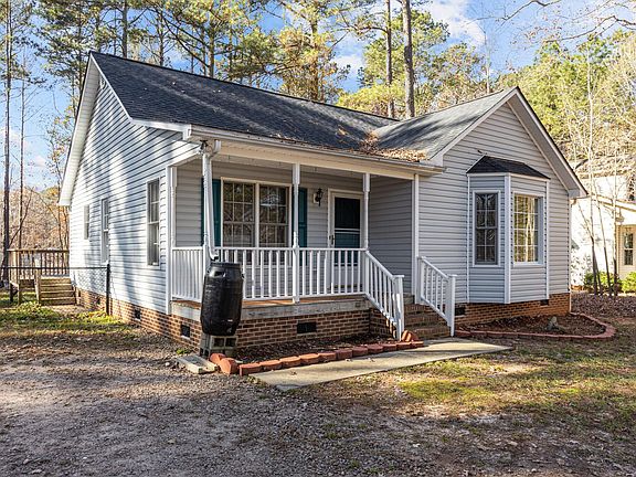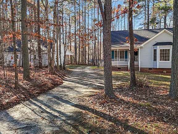Welcome Home! Are you ready to enjoy the Lake Life? this wonderful 3 bedroom, 2 bath home, with a new roof in 2023, is waiting for you. Vaulted ceilings in the living room with a cozy gas fireplace. Eat in kitchen comes with all appliances including new gas stove. Master bedroom features walk in closet and full bathroom. Step out onto your back porch and enjoy the tree lined property and the fenced backyard. There is an oversized detached garage with a lean too attached to one side. Garage has space for a vehicle or water toys for the lake. The garage also has work benches lining the walls and lots of space for storage. The spacious .68 acre lot still has a lot of untapped wooded space for privacy. This home is located close to lake access, and the outdoor fitness area. Lake Royale offers a vast number of amenities to keep you as busy as you want to be. Amenities include 345 acre spring fed lake, basketball, tennis, pickleball, volleyball, putt-putt golf, 18-hole golf course, clubhouse, and beaches for swimming. Come see this home today and start living the lake life!