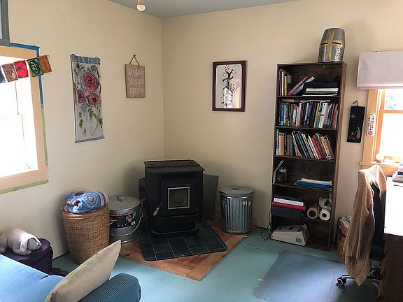 Forest Paradise in ski country!!! For sale by owner. $425,000 or best offer. This 3 level spacious home sits on 4.80 acres of secluded wooded property, with a frog pond, a small stream, (and a large beautiful stream in the forest adjoining the property, across the driveway though not technically on the property), about 8 miles from the town of Rochester, up in the mountains, also called "the North Hollow". Boasting a brand new Roof, and a brand new Deck for taking in the sunset, doing yoga, or sleeping outside in the summer air, and gazing at the stars (completely free of light pollution). Take long walks on the quiet country roads, and enjoy watching the beauty of nature as the seasons change. DIY dream, because all it needs are a few finishing touches! Radiant floor heat on the ground level, from wood burning furnace. House is energy efficient as it really retains heat! Structurally very strong, built by the current/original owner to last for centuries! Newly built driveway encircles the house for easy plowing, with a large packed flat area created for adding the outbuilding of your choice! Or create a flat grass lawn space there instead. Plenty of light for gardening. Big windows throughout the house to take in the beautiful forest scenery. Top level, 3rd floor, can be made into a large spacious bedroom (or two!) with a balcony. Add outside stairs to the existing back door on the 3rd floor, and you could make it into an apartment and rent it out for extra income! 3rd floor shows in the pictures right now as a workshop, and has attic space above it for extra storage. Middle Floor has an open floor plan, is light and airy with big windows, and has a small side room, perfect for a child, or an office. Plenty of room to add another bedroom on the middle floor if you choose. Piping for a bathroom already installed on middle floor, all you have to do is have fun designing and adding it! Middle floor has a 2 year old pellet stove installed that works like a dream, and a back door that leads out behind the house. Ground floor is actually quite spacious, containing the kitchen and bathroom, and is currently partitioned by some cabinets to contain a bedroom. However, the floor plan is open, and it would easily make a great kitchen/diningroom/family room, den/tv room. Polish the concrete floor (with radiant heat), add epoxy flooring, or lay down the flooring of your choice, or simply leave it as is. The choice is yours! It feels wonderful to walk on the warm floors barefoot in the winter. The mountain well water tastes delicious! Brand new dishwasher, and lightly used dryer and washing machine. Small furnace room. Storage space in stairwell. Starlink internet already installed, although you can get other internet if you want to. Come here and find the best kept secret of the North Hollow! It is truly enchanting in these woods!