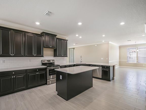 Ready in MAY!! Lennar Tivoli plan: 4 beds, 3 baths, study and 3 car garage. Everything's Included® features: dramatic glass front door, 8' interior doors, Quartz kitchen counter tops, 42'' cabinets, Professional Series Frigidaire® stainless steel appliances (drop-in gas range, double ovens, dishwasher, microwave, and refrigerator), wood ceramic tile in wet areas and ext. into family/dining/halls, tankless water heater, pre-wired security system, Wifi Certified Home Automation, 5 ¼ baseboards throughout, pavered & screened lanai, window blinds throughout, sprinkler system, and pavered driveway & patio. 1 year builder warranty, dedicated customer service program and 24-hour emergency service.