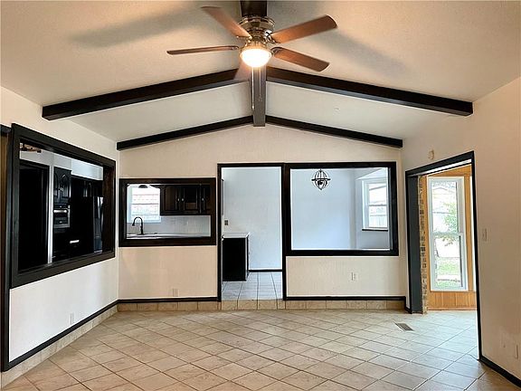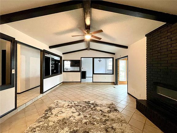 From the moment you approach this home, the new black roof and trim make a statement! Once you enter, you'll find new modern light fixtures and black ceiling beams and sleek electric fireplace that will make you fall in love. The kitchen boasts new stainless appliances including microwave, fridge, dishwasher and range. Banquette seating in the bay window doubles as extra storage space. You will love all the windows in the sunroom which leads out to the fenced backyard with a fire pit, covered patio and koi ponds, as well as two storage sheds. The bathrooms too, are modern and sleek with new fixtures that are sure to please. There is plenty of storage in the hall, double closets in the primary bedroom, and new carpet in all bedrooms. You're sure to fall in love with this one!