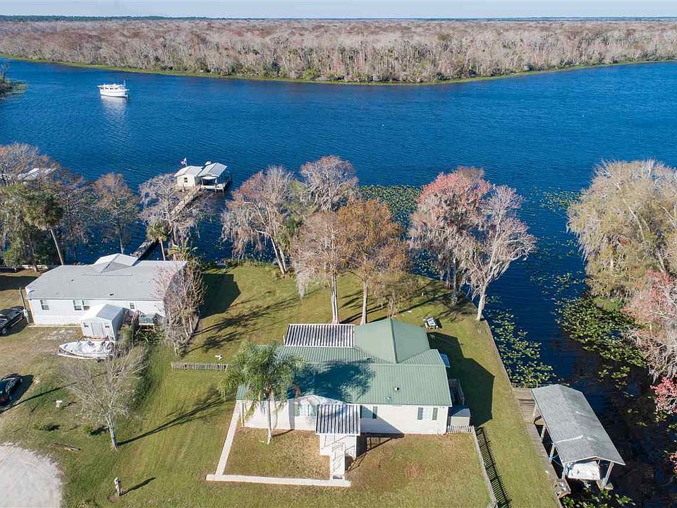 The most beautiful location on Dunn's Creek. Located on 4 lots at the corner of Dunn's Creek and a Canal. Bulk-headed, dock, boat-house with lift. Triple-wide mobile home with 3 bedrooms, 2 baths, living/dining combo, family room with a spectacular view. Thirty minutes from St Augustine. 1 hour to Jax or Gainesville. Coming by boat? Go south on the mighty St Johns to marker 16, take a left and we are the first home on the left.