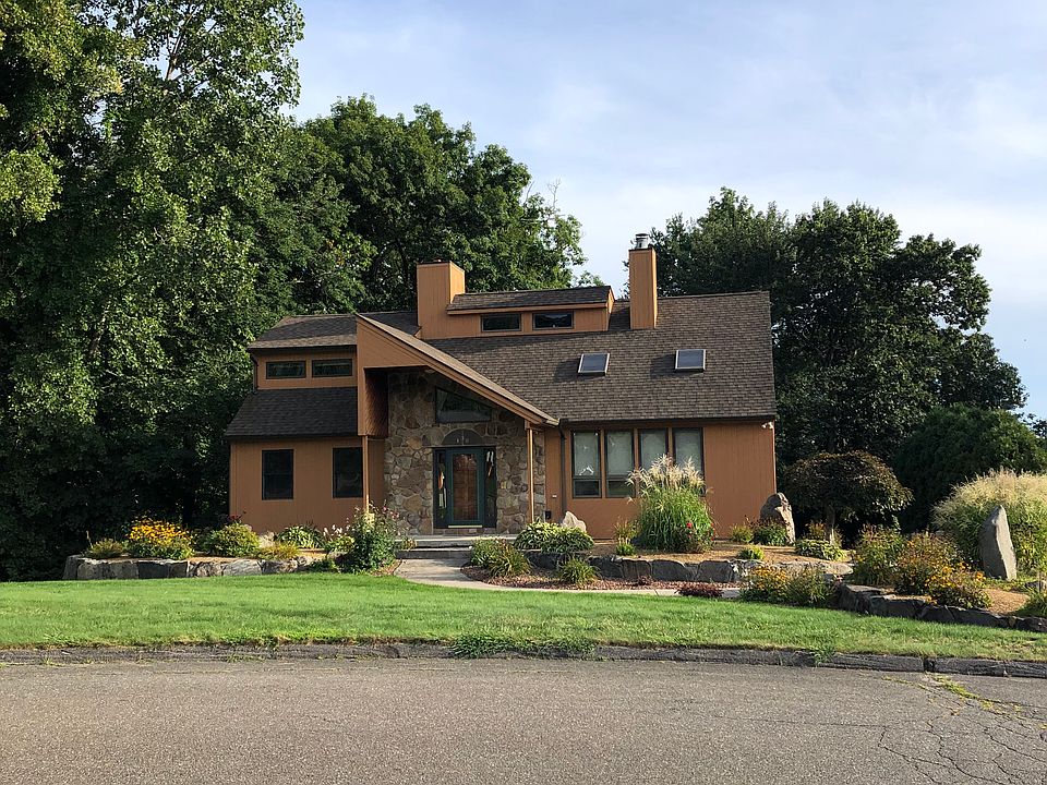 Custom Built by Original Homeowner 1989. There is Much pride in this beautiful landscaped contemporary home. This home features 4 bedrooms, an office, and 2.5 bathrooms with a gorgeous well maintained yard. The outside speaks for itself when you drive by and see the large rock wall and fountain feature! The Kitchen is very modern in black, white, and silver gray cabinets, black granite, and faux marble vinyl flooring. Dining room has gorgeous hardwood custom designed flooring that leads into the vaulted ceiling living room. The dining room also has glass doors leading out to the large deck deck. The 1st floor office space also has an entrance to the 48 foot long composite deck. The kitchen has the main entrance to the deck at the 20x14 center space. The 2 car garage is extra long with 9x8 doors to fit a truck. The basement adds a nice space to finish off with a cold cellar, plumbing for half bath, and walk out to backyard. The wall to wall carpeted 2nd floor to this 2400sq foot home has the master suite complete with full bathroom- jacuzzi tub, stand up shower, double sinks and 2 main closets. Also, a sliding door to small private balcony. The full bathroom down the hall houses the washer and dryer closet for doing laundry loads with ease! The front bedroom has a built in dresser and closet with the back bedroom housing the built in wall ironing board. This entire house is boasting with natural sunlight! Sky lights, vaulted ceilings, and windows all around give this home a large, spacious feel. The homeowners would love to tell you about their custom features in this well loved home by making an appointment. You will need to show your bank pre-approval letter for serious inquiries only.