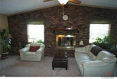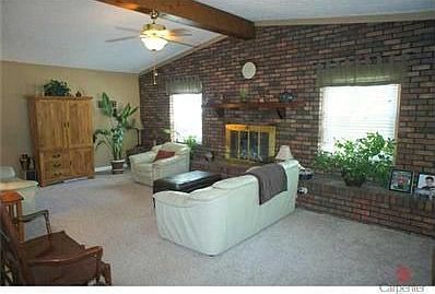 Welcome home! That's what you'll feel the moment you step into this well-maintained, inviting home with its huge great rm graced by a full brick-walled fireplace & cathedral ceiling. New carpet, neutral colors throughout. Dining area off step-saver kitchen. Giant master suite with tray ceiling, bayed window, large walk-in closet. Updated bath feat new tub & tile surround. BR 2 has 2 closets, and closets line hallways for extra storage! Deck, fenced yard, 2 storage sheds, even has a treehouse!