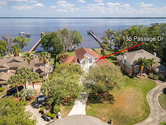 Welcome to 138 Passage, an outstanding riverfront home conveniently located on a quiet Fleming Island cul de sac. This spectacular home features 20ft. + ceilings in the family room, beautiful floors, new paint in and out, an elegant new kitchen w/ new upscale appliances, an over sized garage, a dock w/ 2 covered lifts and party deck, a 1/2 basketball court, an in ground pool with excellent river views, and a mediterranean metal roof. This home is very stylish and has been very well remodeled. There is a first floor office/bedroom and a large master on the first floor. On the second floor there are two more bedrooms and a giant bonus room and bath above the garage which could be a guest suite, 5th bedroom, game room or media room. This house has everything most waterfront buyers want!