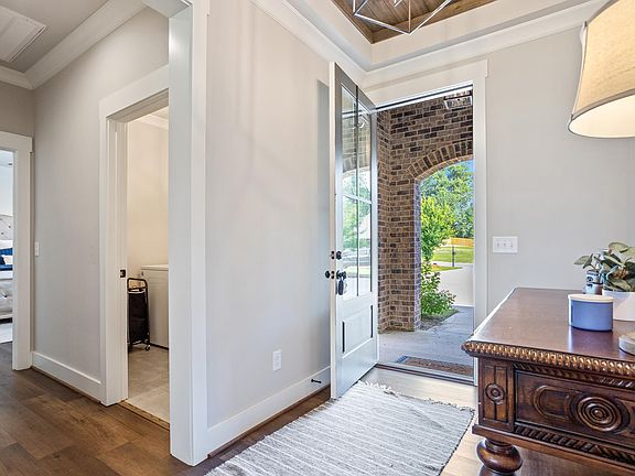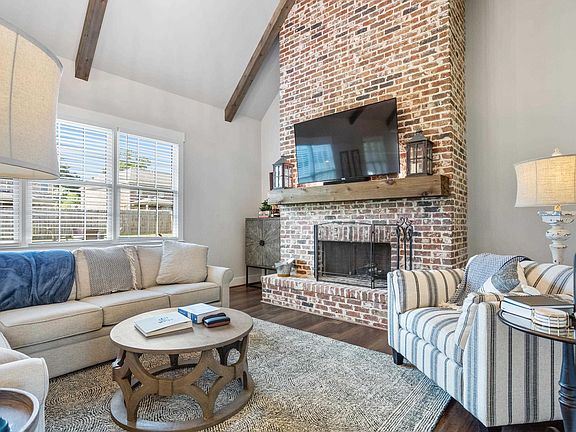 Custom full brick home built in 2022 with many upgrades! Large, flat lot with wooden privacy fence. Covered porch and outdoor fire pit. Large, one level open floor plan with vaulted ceilings in great room and dining room. All LVP floors and tile in all bathrooms. Kitchen features quartz countertops, custom soft close cabinetry, smooth top stove, under cabinet lighting, and large island with space for 4 bar stools. Large pantry with custom wood shelving and plugs for appliances. Spacious primary bedroom and luxury master bath with large walk in shower and free standing tub. Double vanities with quartz countertops and linen stack between sinks. Large walk in closet. Second bedroom features en suite bathroom and lots of natural light. Third and fourth bedrooms and third bath are very spacious. Large mud bench with hooks and storage near entry from garage. Garage features 8' tall doors to accommodate tall vehicles. Sprinkler system and landscape lighting in front and backyard.