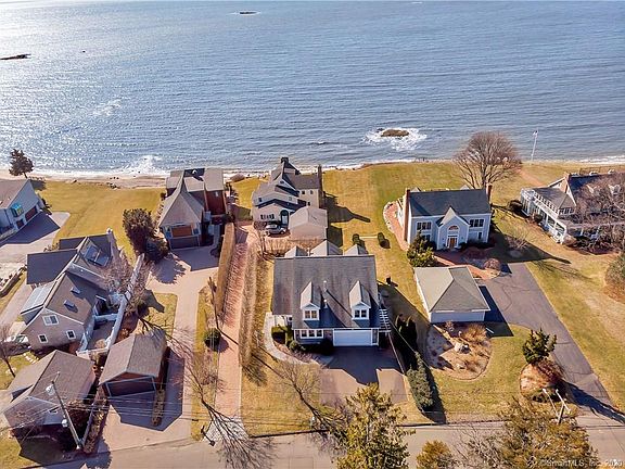 Salty air, sunshine and your very own private sandy beach to enjoy sunrises, sunsets and long walks! This charming Contemporary Cape, built in 2005, is located in the Pawson Park area of Branford on a peninsula at the mouth of the Branford Harbor. You'll notice the attention to detail as soon as you walk through the Foyer and look into the wood paneled office with built-in book shelves and gas fireplace. There's a powder room off the Foyer. As you enter the Great Room with its gleaming hardwood floors, cathedral ceiling and glass windows which bring in a vast amount of natural light, a gas fireplace, and sliders to a blue stone patio, you can see the continued attention to detail. At the opposite end is a beautiful kitchen with plenty of cabinets, granite counter tops, Sub-Zero refrigerator with wood panels to match the cabinets, Gas cook top, Dacor wall oven and microwave and Asko dishwasher and a breakfast bar and seating, and dining area while enjoying LIS views. Also there's a large pantry and laundry area. MBDRM suite is on the 1st floor and boasts a gas fireplace, walk-in closets, water views, two sinks, claw foot tub and walk-in shower. Three generous size bedrooms, also with water views, and a full bath make up the second floor. Property has a whole house generator and irrigation system, city water and sewers, htd 2 car garage. Train station is less than 2 mi. away as are restaurants, marinas and shops. Yale is approx. 20 minutes. NO FLOOD INSURANCE REQUIRED.