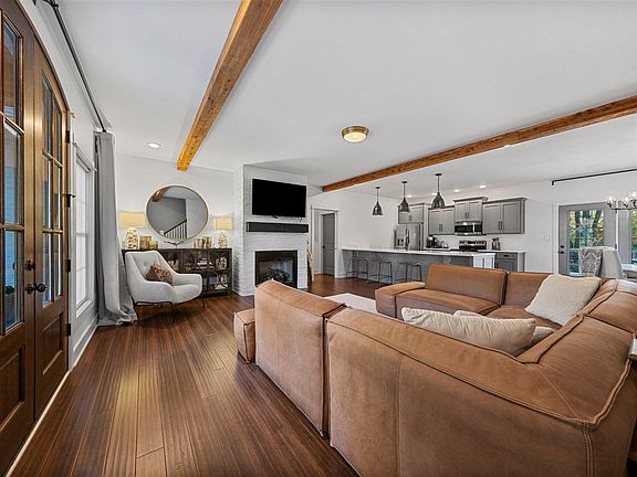 Welcome to this spacious 3-bedroom, 2-bath home offering an open floor plan and stylish, modern finishes throughout. Beautiful hardwood and tile flooring enhance the home’s inviting atmosphere. The bright and airy living areas seamlessly flow, perfect for both everyday living and entertaining. Step outside to your private, tree-lined backyard oasis, featuring a luxurious deck and patio — ideal for relaxation or hosting gatherings. The walkout basement includes a large bar area and abundant storage space, adding extra functionality and charm. Additionally, the walk-up attic presents the potential for expansion, with the possibility to finish it into even more living space to suit your needs. Conveniently located just minutes from town, local amenities, and I-65, this home offers both comfort and accessibility in a sought-after area.