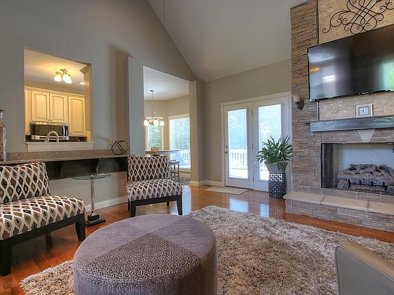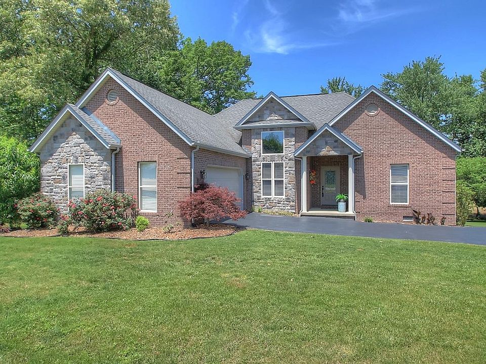 What a classy home! This alluring one story brick home is peacefully nestled in a cozy subdivision, convenient to town. Quality abounds in its open floor plan, all hardwood and tile floors, kitchen with quartz counters, vaulted and trey ceilings, great room with extremely beautiful fireplace, formal and informal dining, master suite/with tub and shower, a wonderful big deck in back with views of trees and a farm, and a large crawl space for storage.